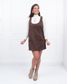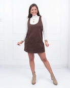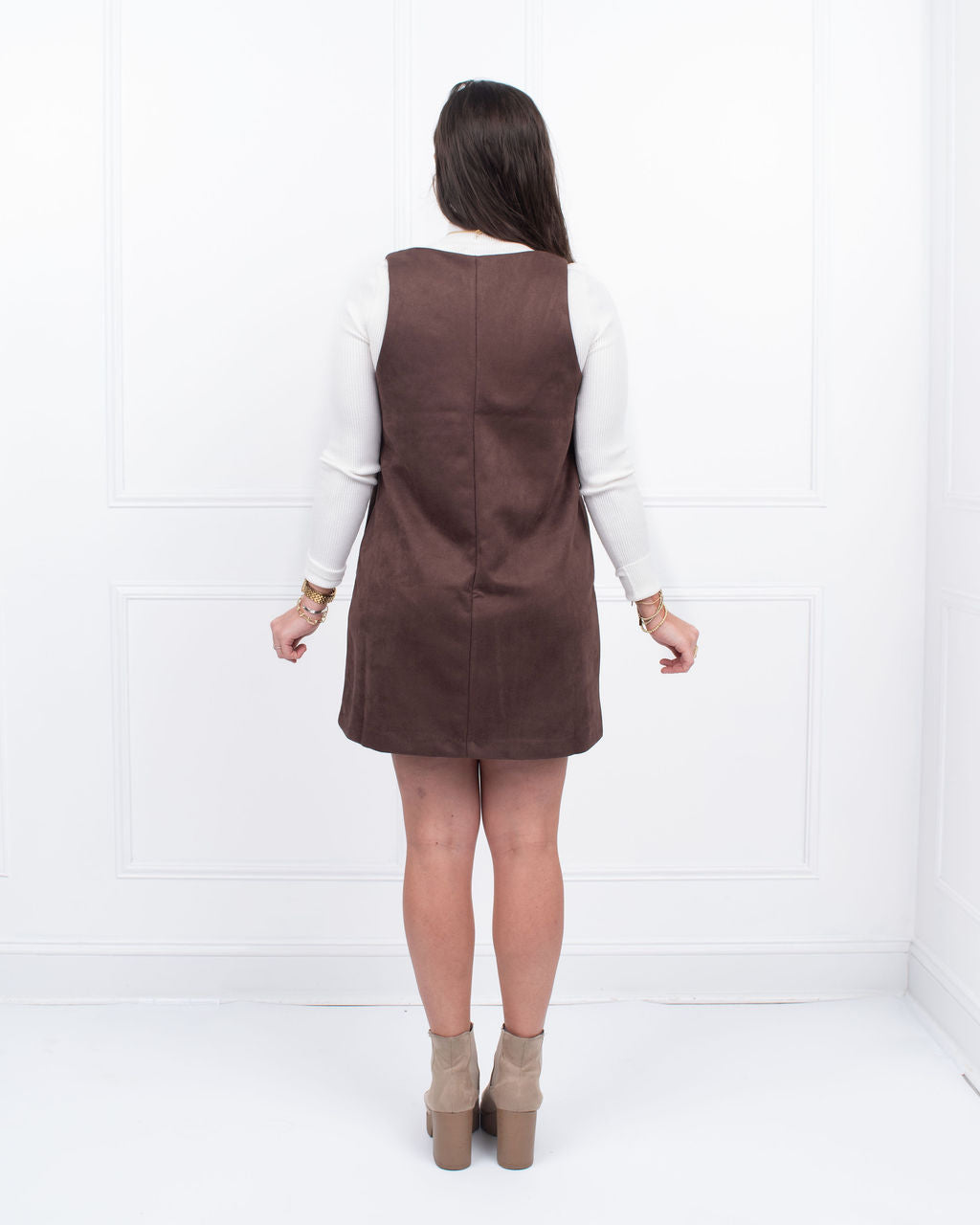 Elevate your wardrobe with the Chestnut Season Suede Shift Dress, crafted in a rich chestnut suede fabric with subtle stretch for comfortable wear. This dress features faux front pockets for a sleek look and a discreet side zipper closure that ensures a smooth fit. Fully lined for added comfort!