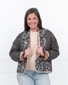 Bring double the fun to your wardrobe with the Colette Mixed Print Jacket! This reversible quilted jacket lets you switch up your style in a snap—choose between two eye-catching prints to match your mood. Cozy and lightweight, it’s perfect for layering on chilly days while adding a playful twist to any outfit. 100% Cotton.