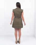This Olive You Sleeveless Dress blends classic tailoring with modern ease. Crafted from lightweight, woven fabric, it offers a non-sheer finish for confident wear. The dress features a sleeveless lapel design with contrast accent stitching that highlights its structured silhouette. Practical side pockets and a self-tie belt at the waist enhance both function and shape. An unlined construction ensures breathability, while the button-down front and collar provide a polished, expert touch suitable for a variety of occasions!
