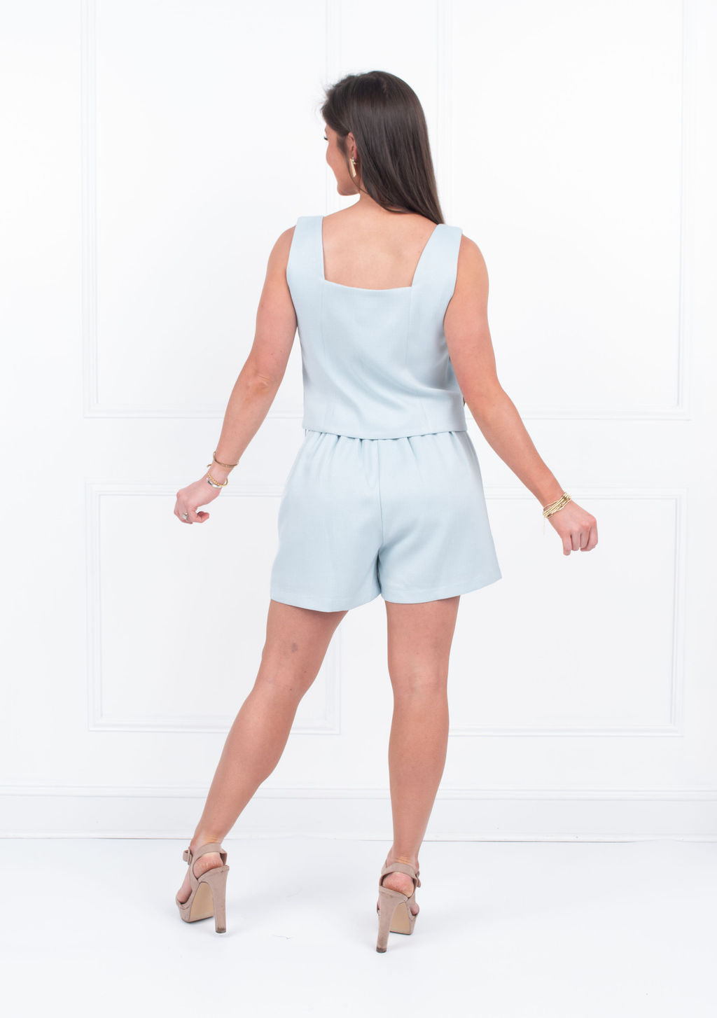 Upgrade your wardrobe with the Serene Dream Blue Set. This sky blue 2 piece set features a button down top and scolloped detailing, crafted from 100% polyester and lined for comfort. Keep it looking its best with a simple hand wash.